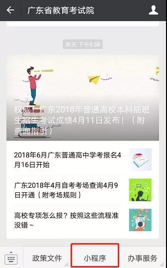我省2018年普通高校本科插班生(含三二分段专升本转段)招生考试考生成绩4月11日公布。今日16:00起,考生可通过院官微小程序查询考试成绩。