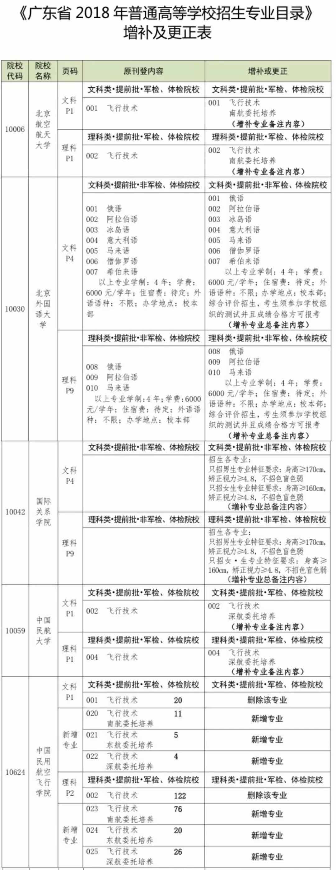 《广东省2018年普通高等学校招生专业目录》增补及更正
